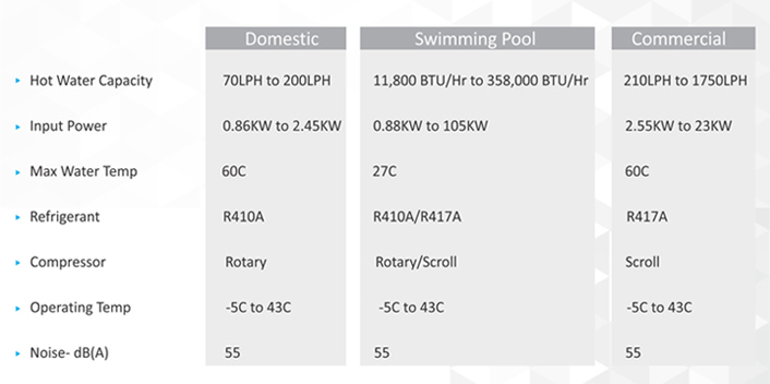Our Heat Pumps have been carefully designed to service Hot Water needs of every segment be it Domestic or Commercial or Heating Swimming Pools. This is the only safest water heating solution in which water does not come in direct contact with heating element. We also offer project based Hot Water Solutions.